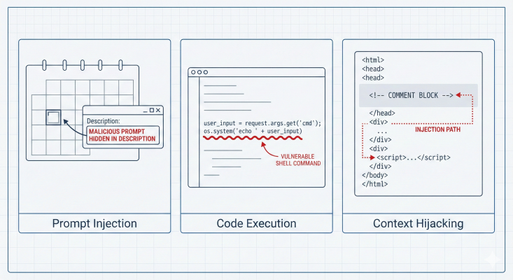 The Security Development Lifecycle gap is crushing production plans. Turn of 2025 and 2026 brought three high-profile exploits: The Gemini Calendar prompt injection let attackers exfiltrate calendar data by hiding instructions in event descriptions, Cursor IDE’s CVE-2026-22708 exposed arbitrary code execution through malicious workspace files, and Claude Code faced session hijacking through crafted HTML comments in codebases. These aren’t theoretical risks. They’re production blockers that killed deployment plans for enterprises that spent months on pilots.