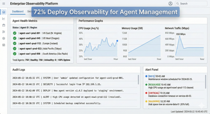 72% of enterprises now use observability platforms to manage agent lifecycle, treating autonomous agents like microservices with instrumentation, health checks, and distributed tracing.